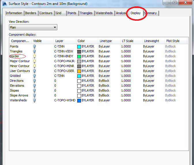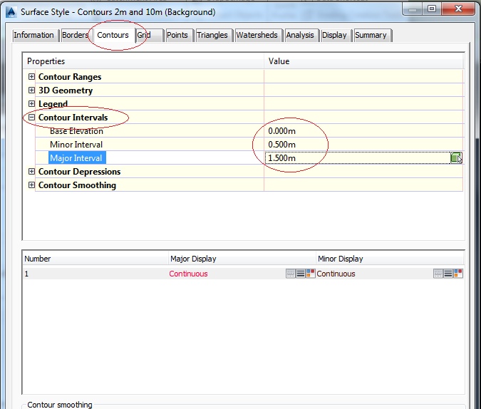 maka secara default AutoCAD Civil 3D ini akan meng-generate interval kontur default dengan 2 meter untuk kontur minornya dan 5 meter untuk kontur mayornya (lihat pada opsi Create Surface yang sudah ditulis di atas)